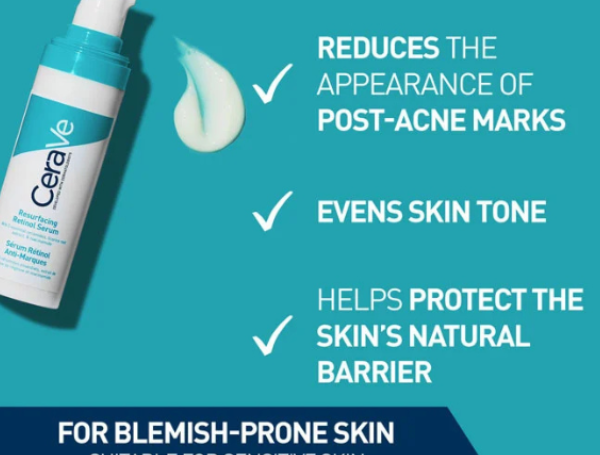 CeraVe Resurfacing Retinol Serum helpt de zichtbaarheid van restlittekens na acne te verminderen en poriën te verfijnen voor een egalere huidstructuur.
